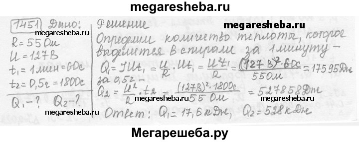 Подробный решебник (ГДЗ) по Физике за 7‐9 (седьмой‐девятый) класс сборник задач - готовый ответ номер - 1451. Авторы учебника: Лукашик, Иванова. Издательство: Просвещение 2016.
