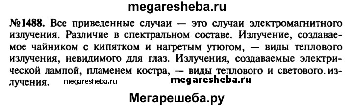 1488. Что общего и в чем различие между излучением, создаваемым чайником с кипятком, и излучением, создаваемым электрической лампой; излучением, создаваемым нагретым утюгом, и излучением, создаваемым пламенем костра?