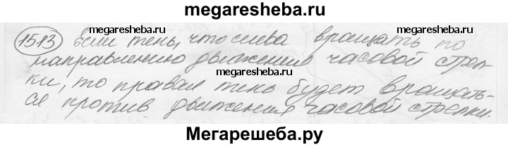 1513. На рисунке 378 показаны два источника света и тени от картонного пропеллера, укрепленного на тонкой спице, плоскость которого перпендикулярна экрану Э. Если пропеллер вращать, то тень, что слева, вращается по направлению движения часовой стрелки. В каком направлении будет вращаться правая тень