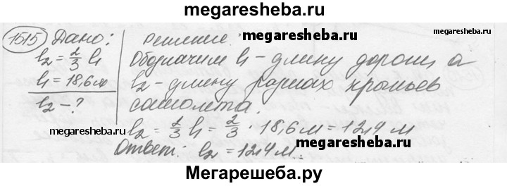 1515. Тень от низко летящего вдоль дороги самолета покрывает дорогу на 2/3 ее ширины. Каков размах крыльев самолета, если ширина дороги равна 18,6 м