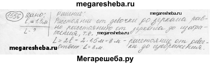 1556. Девочка стоит в полутора метрах от плоского зеркала. На каком расстоянии от себя она видит в нем свое изображение?