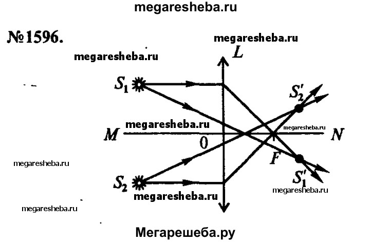 1596. Постройте изображения светящихся точек S1 и S2 в тонкой линзе с фокусным расстоянием F, расположенных относительно линзы так, как показано на рисунке 418.