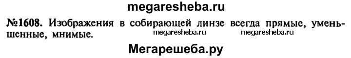 1608. Какими будут изображения букв этой строки, если рассматривать их с помощью рассеивающей линзы: прямыми или перевернутыми; увеличенными или уменьшенными; мнимыми или действительными