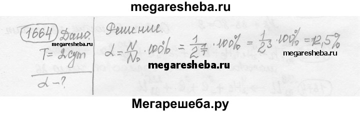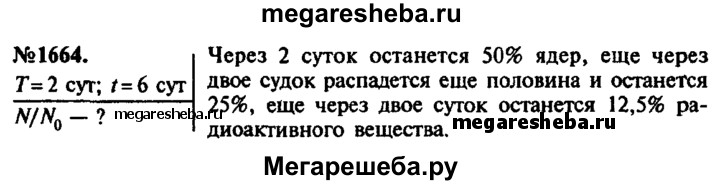 1664. Период полураспада элемента равен 2 сут. Сколько процентов радиоактивного вещества останется по истечении 6 сут.?