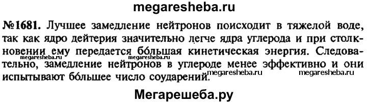 1681. В качестве замедлителей быстрых нейтронов можно использовать тяжелую воду или углерод. В каком из этих замедлителей нейтрон испытывает большее число столкновений, пока его скорость не снизится до тепловой?