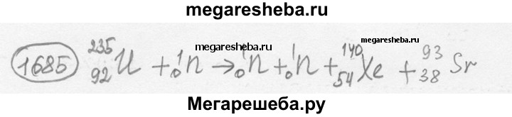 1685. Ядро урана 235(92) U, захватив один нейтрон, разделилось на два осколка, при этом высвободилось два нейтрона. Один осколок оказался ядром ксенона 140(54)Хе. Ядром какого элемента является другой осколок?