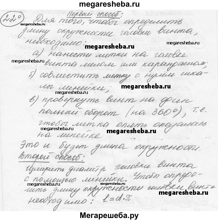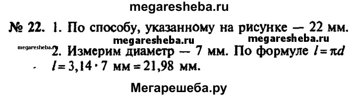 22. Определите длину окружности головки винта или гвоздя один раз способом, изображенным на рисунке 6, другой раз — измеряя диаметр и умножая его на 5 число л. Результаты сравните и запишите в тетради.
