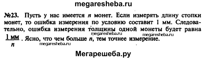 23. Возьмите несколько одинаковых монет, сложите их так, как показано на рисунке 7, и измерьте линейкой, имеющей цену деления 1 мм, толщину получившейся стопки. Определите толщину одной монеты. В каком случае толщина одной монеты будет измерена более точно: с малым или большим числом монет?