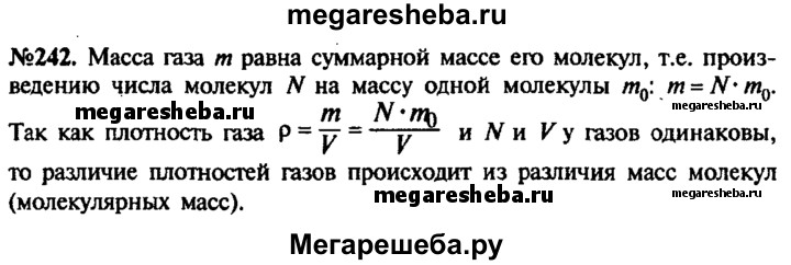 242. Известно, что при одинаковых условиях разные газы в объеме 1 м3 содержат одно и то же число молекул, а плотности газов разные. Чем объясняется различие в плотности газов?