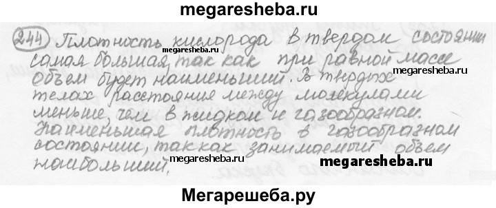244. Кислород (как и любой из газов) в зависимости от условий может находиться в газообразном, жидком или твердом состоянии. В каком из состояний плотность кислорода наибольшая; наименьшая? Почему?