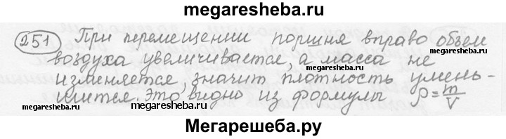251. В результате перемещения поршня вправо объем воздуха в закрытом цилиндре увеличился (см. Рис. 52 рис. 52). Как при этом изменилась плотность воздуха в цилиндре?