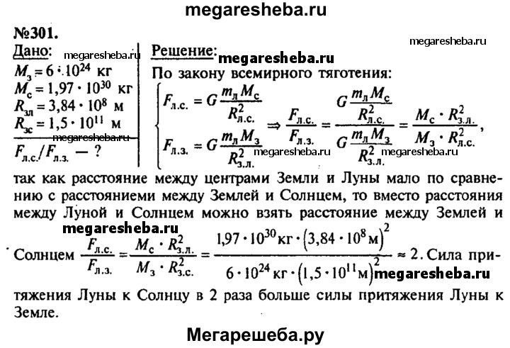 301. Во сколько раз сила притяжения между Луной и Солнцем больше, чем сила притяжения между Луной и Землей? Как объяснить, что Луна является все же спутником Земли?