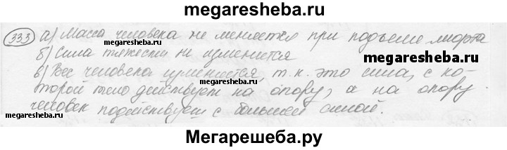 333. В начале подъема в лифте высотного здания человек ощущает, что его прижимает к полу лифта. Меняются ли при этом а) масса человека; б) сила тяжести, действующая на человека; в) вес человека?