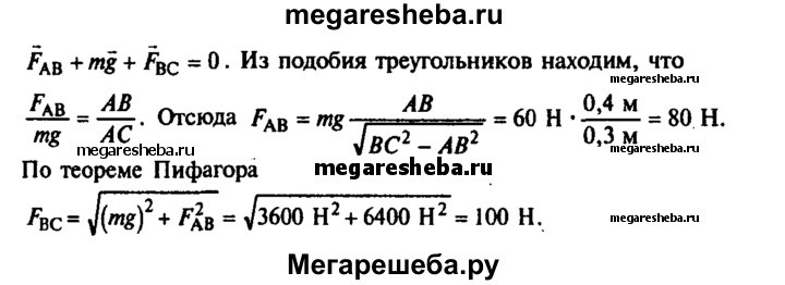 397. Сила тяжести, которая действует на груз, подвешенный к кронштейну, равна 60 Н. Найдите рис- 92 силы, действующие на горизонтальную поперечину АВ, подкос ВС, линейные размеры которых даны в условных единицах на рисунке 91.