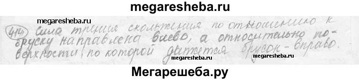 414. Брусок двигают вправо (рис. 97). Куда направлена сила трения скольжения по отношению к бруску; относительно поверхности, по которой движется брусок?