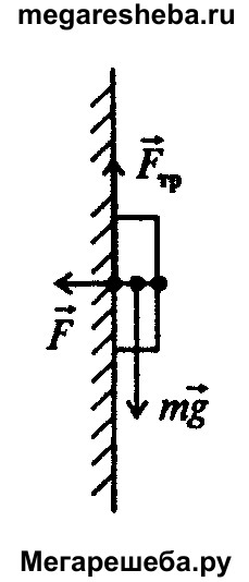 418. Книга прижата к вертикальной поверхности (рис. 101). Изобразите графически направления сил тяжести и трения покоя, действующих на книгу.
