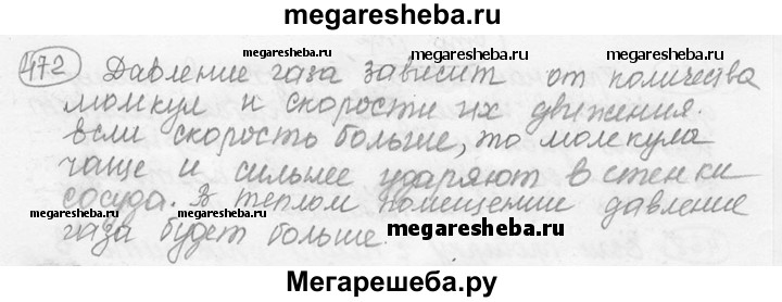 472. Массы одного и того же газа в двух одинаковых закрытых сосудах одинаковы. Один из этих сосудов находится в теплом помещении, а другой — в холодном. В каком из сосудов давление газа больше? Почему?