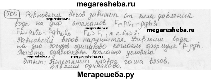 Подробный решебник (ГДЗ) по Физике за 7‐9 (седьмой‐девятый) класс сборник задач - готовый ответ номер - 506. Авторы учебника: Лукашик, Иванова. Издательство: Просвещение 2016.
