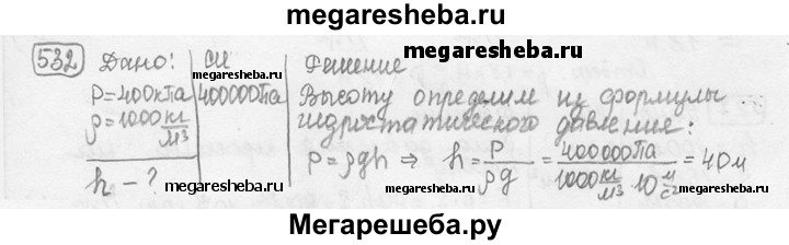 532. Напор воды в водокачке создается насосом. Определите на какую высоту поднимается вода, если давление, созданное насосом, равно 400 кПа?