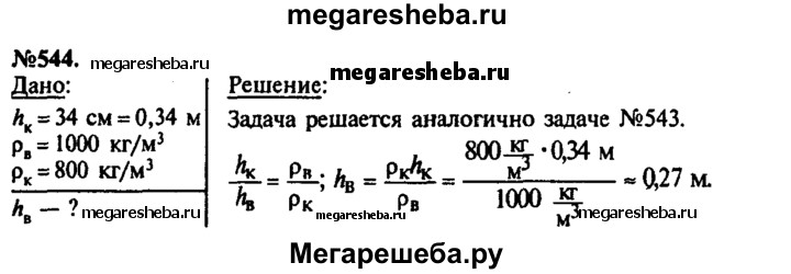 Подробный решебник (ГДЗ) по Физике за 7‐9 (седьмой‐девятый) класс сборник задач - готовый ответ номер - 544. Авторы учебника: Лукашик, Иванова. Издательство: Просвещение 2016.