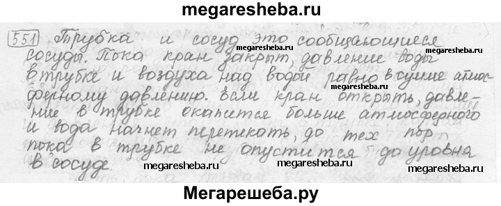 551. Пока кран К закрыт, вода из трубки не выливается (рис. 153). При открывании крана уровень воды в трубке опускается до уровня воды в сосуде. Почему?