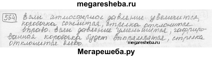 564. На рисунке 161 изображена схема простейшей модели анероида. Куда отклонится конец стрелки, если атмосферное давление увеличится; уменьшится?