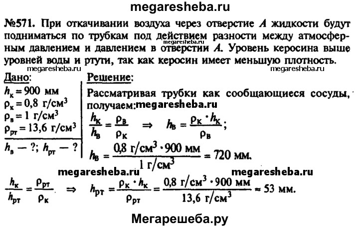 Подробный решебник (ГДЗ) по Физике за 7‐9 (седьмой‐девятый) класс сборник задач - готовый ответ номер - 571. Авторы учебника: Лукашик, Иванова. Издательство: Просвещение 2016.