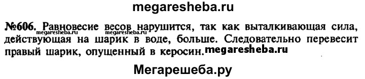 Подробный решебник (ГДЗ) по Физике за 7‐9 (седьмой‐девятый) класс сборник задач - готовый ответ номер - 606. Авторы учебника: Лукашик, Иванова. Издательство: Просвещение 2016.