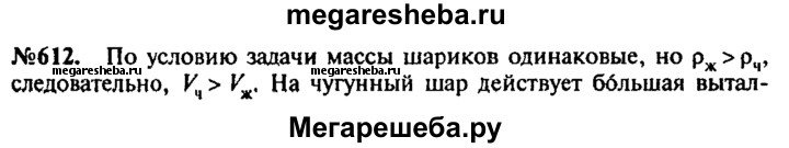 Подробный решебник (ГДЗ) по Физике за 7‐9 (седьмой‐девятый) класс сборник задач - готовый ответ номер - 612. Авторы учебника: Лукашик, Иванова. Издательство: Просвещение 2016.