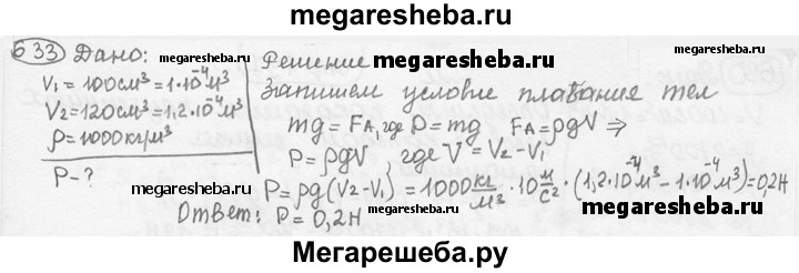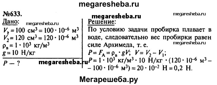Подробный решебник (ГДЗ) по Физике за 7‐9 (седьмой‐девятый) класс сборник задач - готовый ответ номер - 633. Авторы учебника: Лукашик, Иванова. Издательство: Просвещение 2016.