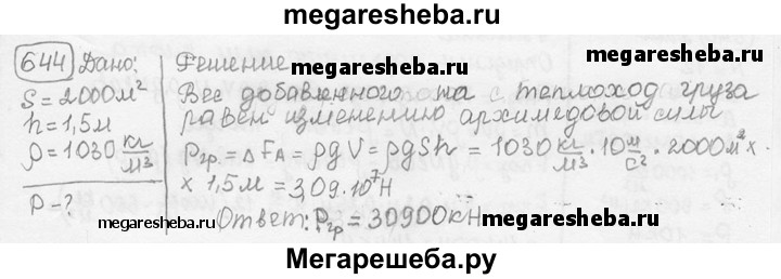 Подробный решебник (ГДЗ) по Физике за 7‐9 (седьмой‐девятый) класс сборник задач - готовый ответ номер - 644. Авторы учебника: Лукашик, Иванова. Издательство: Просвещение 2016.