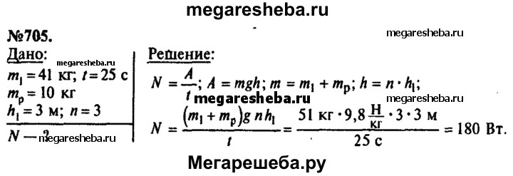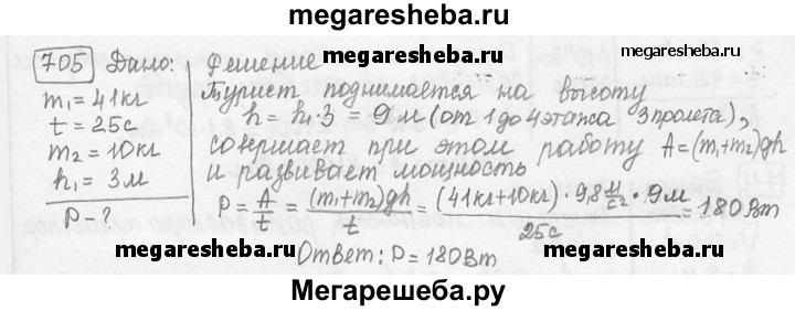 Подробный решебник (ГДЗ) по Физике за 7‐9 (седьмой‐девятый) класс сборник задач - готовый ответ номер - 705. Авторы учебника: Лукашик, Иванова. Издательство: Просвещение 2016.