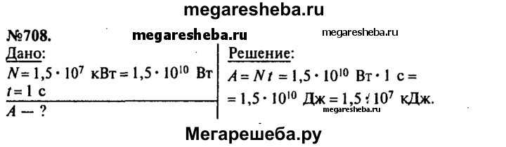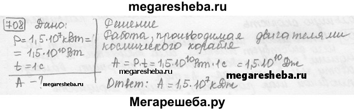 708. Мощность двигателей космического корабля «Восток» равна 1,5 • 107 кВт. Какую работу могут произвести двигатели этого корабля за 1 с?