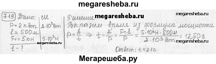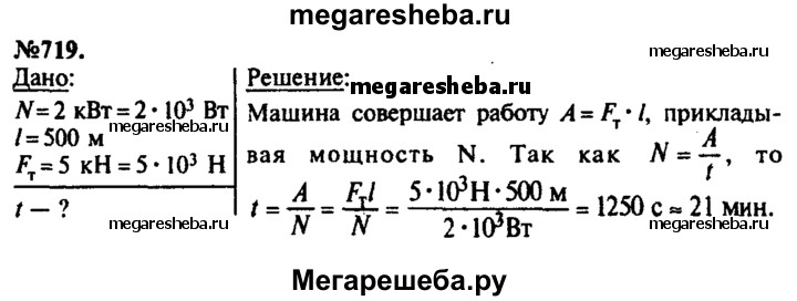 Подробный решебник (ГДЗ) по Физике за 7‐9 (седьмой‐девятый) класс сборник задач - готовый ответ номер - 719. Авторы учебника: Лукашик, Иванова. Издательство: Просвещение 2016.