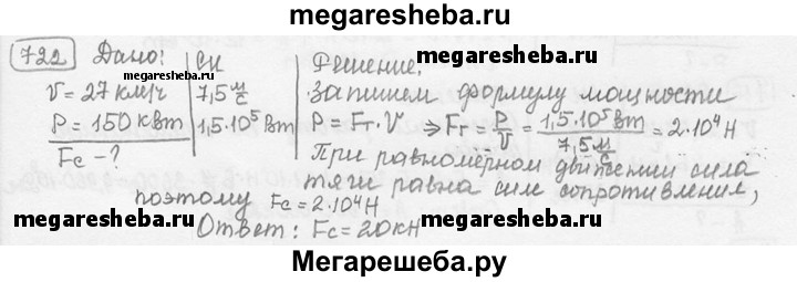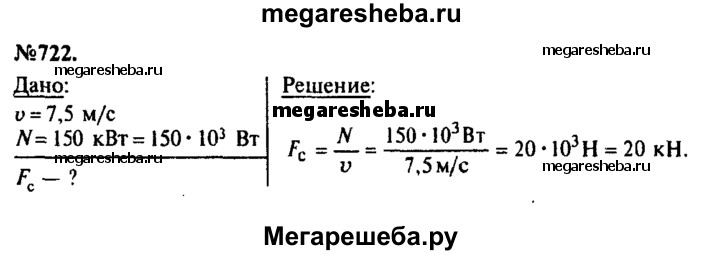 Подробный решебник (ГДЗ) по Физике за 7‐9 (седьмой‐девятый) класс сборник задач - готовый ответ номер - 722. Авторы учебника: Лукашик, Иванова. Издательство: Просвещение 2016.