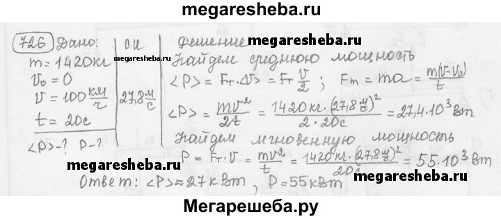 Подробный решебник (ГДЗ) по Физике за 7‐9 (седьмой‐девятый) класс сборник задач - готовый ответ номер - 726. Авторы учебника: Лукашик, Иванова. Издательство: Просвещение 2016.