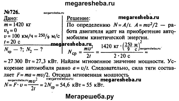 ГДЗ по физике 7‐9 класс Лукашик сборник задач номер - 726