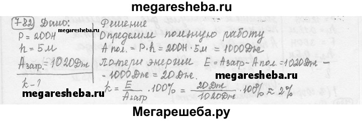 Подробный решебник (ГДЗ) по Физике за 7‐9 (седьмой‐девятый) класс сборник задач - готовый ответ номер - 782. Авторы учебника: Лукашик, Иванова. Издательство: Просвещение 2016.