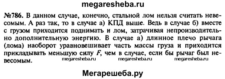 Подробный решебник (ГДЗ) по Физике за 7‐9 (седьмой‐девятый) класс сборник задач - готовый ответ номер - 786. Авторы учебника: Лукашик, Иванова. Издательство: Просвещение 2016.