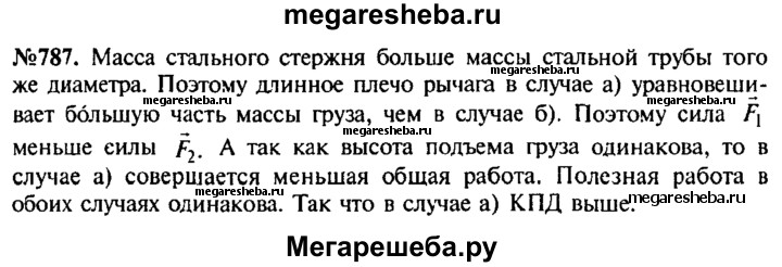 787. Для подъема одного и того же груза на одну и ту же высоту в качестве рычага можно использовать стальной стержень (рис. 236, а) или такого же диаметра и длины, как стержень, стальную трубу (рис. 236, б). Одинаковым ли в этих случаях будет КПД рычагов? Ответ обоснуйте.