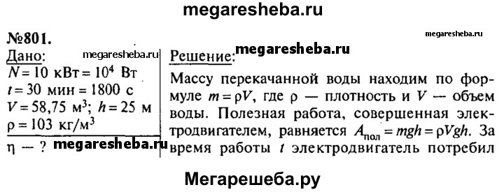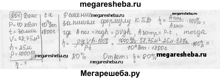 Подробный решебник (ГДЗ) по Физике за 7‐9 (седьмой‐девятый) класс сборник задач - готовый ответ номер - 801. Авторы учебника: Лукашик, Иванова. Издательство: Просвещение 2016.
