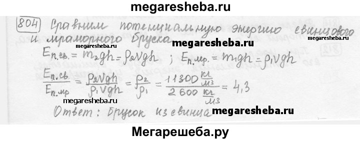 Подробный решебник (ГДЗ) по Физике за 7‐9 (седьмой‐девятый) класс сборник задач - готовый ответ номер - 804. Авторы учебника: Лукашик, Иванова. Издательство: Просвещение 2016.