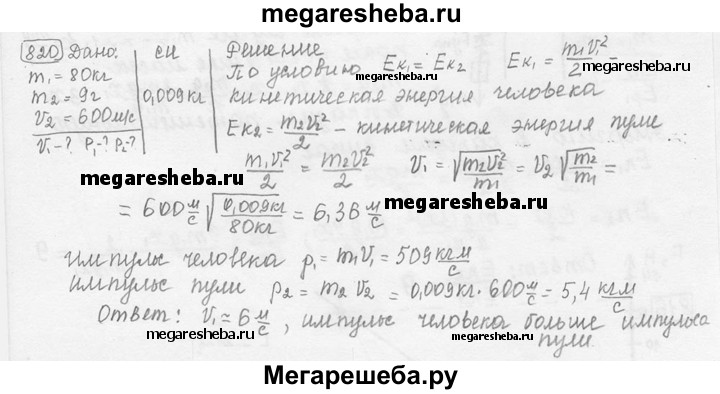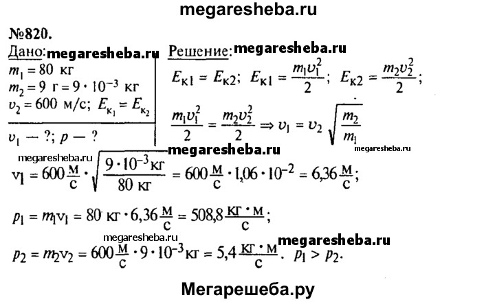 Подробный решебник (ГДЗ) по Физике за 7‐9 (седьмой‐девятый) класс сборник задач - готовый ответ номер - 820. Авторы учебника: Лукашик, Иванова. Издательство: Просвещение 2016.