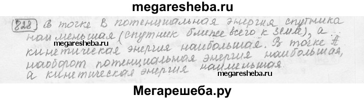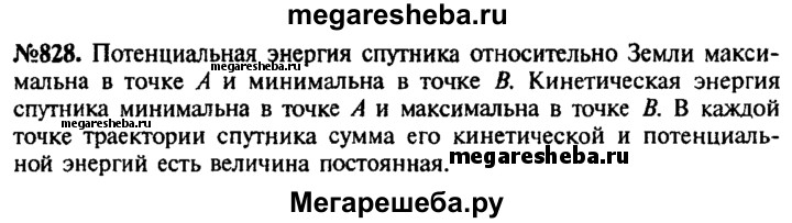 828. В какой точке траектории движения искусственного спутника (см. рис. 26) потенциальная энергия его относительно Земли наибольшая; наименьшая? Что можно сказать о кинетической энергии спутника в этих точках?