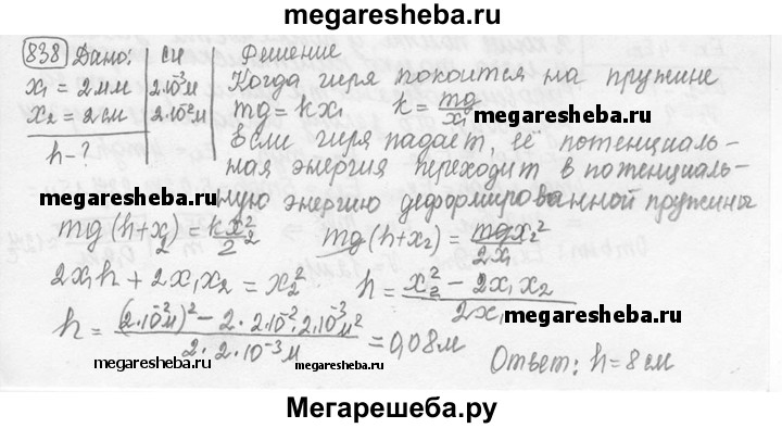 ГДЗ по физике 7‐9 класс Лукашик сборник задач номер - 838
