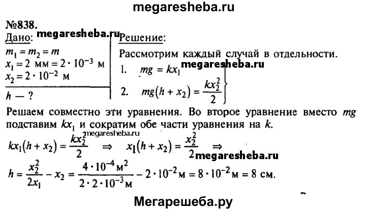 Подробный решебник (ГДЗ) по Физике за 7‐9 (седьмой‐девятый) класс сборник задач - готовый ответ номер - 838. Авторы учебника: Лукашик, Иванова. Издательство: Просвещение 2016.