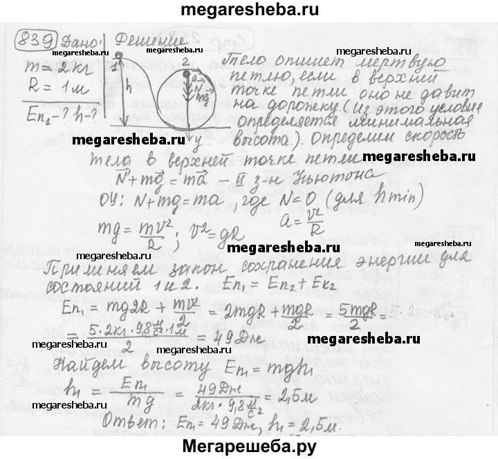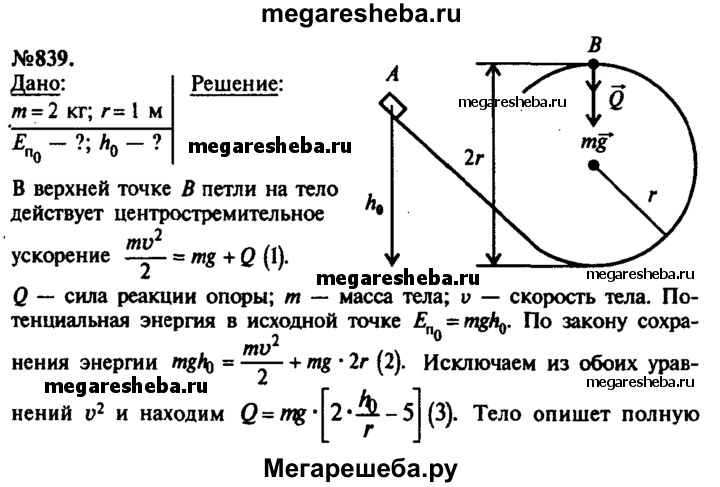 Подробный решебник (ГДЗ) по Физике за 7‐9 (седьмой‐девятый) класс сборник задач - готовый ответ номер - 839. Авторы учебника: Лукашик, Иванова. Издательство: Просвещение 2016.