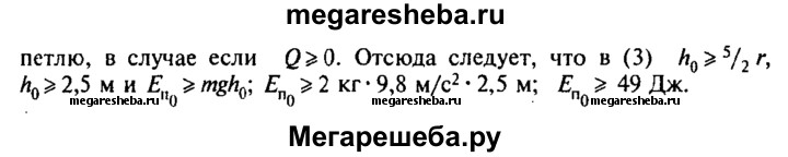 839. Тело массой 2 кг соскальзывает вниз по наклонному скату, переходящему в «мертвую петлю» радиусом 1 м (рис. 243). Какой потенциальной энергией должно обладать тело в начальный момент, чтобы описать полную петлю? С какой высоты h0 оно должно соскальзывать? (Трение считайте ничтожно малым.)