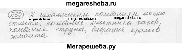 850. Свойством повторяемости обладают качания маятника часов, сезонные изменения температур, движение стрелки часов, колебания струны, вибрация крыльев самолета, движение Земли вокруг Солнца, колебания напряжения в сети электрического тока. Какие из перечисленных процессов можно назвать механическими колебательными процессами?