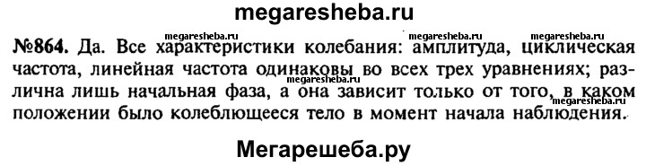 864. Можно ли предположить, что одно и то же колебание может быть описано с помощью следующих уравнений: х = 3 sin (п + п), х = 3 cos x = 3 cos (if-*)?